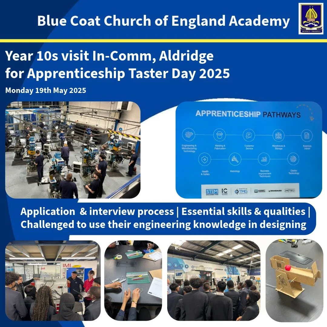 On Monday 19th May 2025, pupils visited In-Comm, Aldridge to get an insight into a day in the life of an apprentice; what skills and qualities are needed when going through the application and interview process.