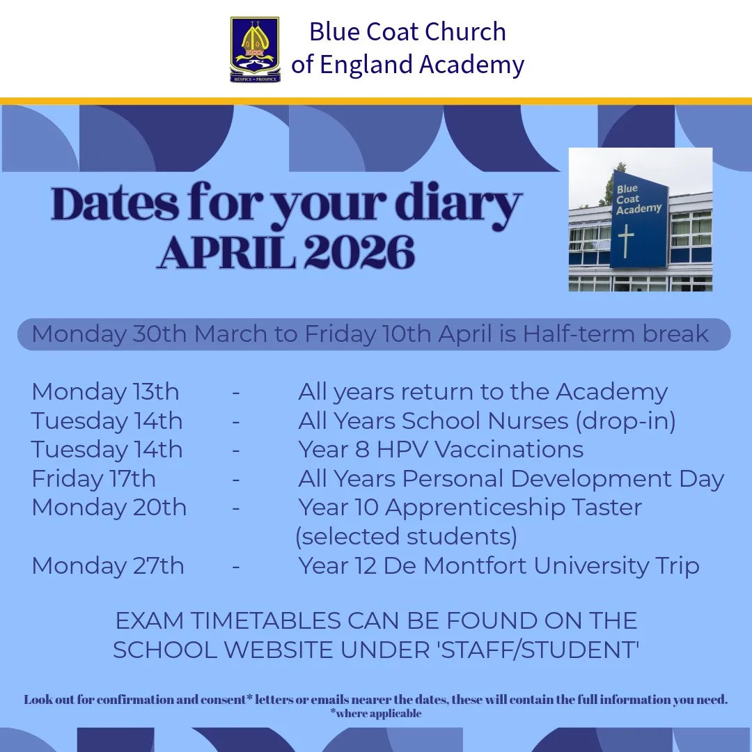 Look out for confirmation and consent* letters or emails nearer the date, these will contain the full information you need.