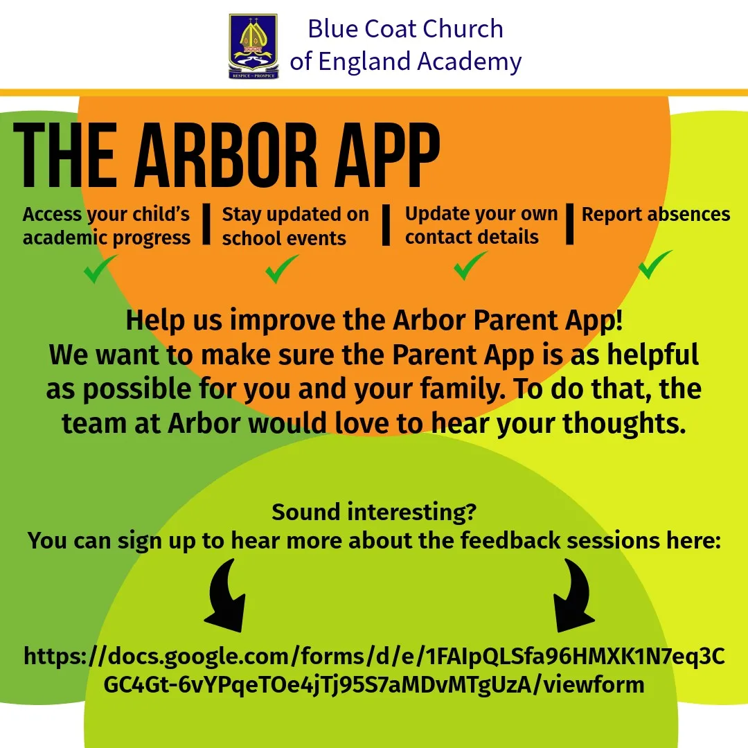 We want to make sure the Parent App is as helpful as possible for you and your family. To do that, the team at Arbor would love to hear your thoughts.