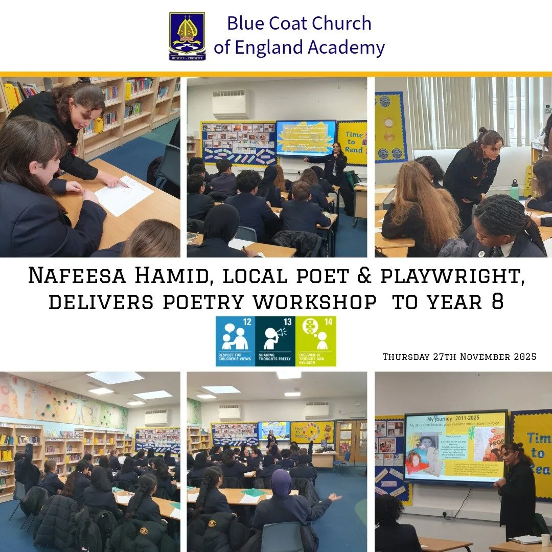 On Thursday 27th November, Nafeesa Hamid visited and delivered a session to Year 8 students about how poetry and creative writing influences careers and futures. Students had the opportunity to write their own poems and had a Q and A session with the poet.