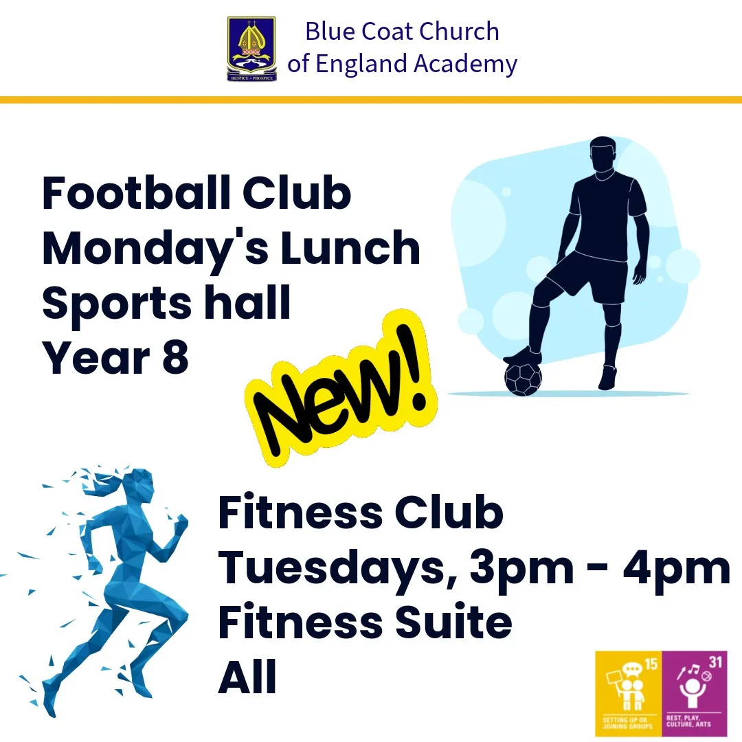 Football Club runs Monday lunchtimes and is open to Year 8, come along to the Sports Hall.