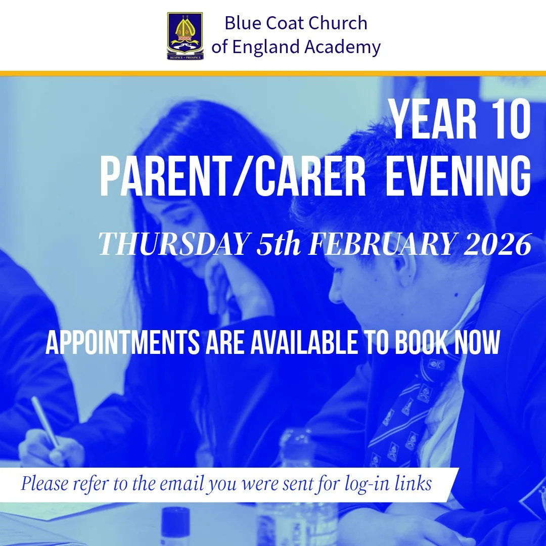 Appointments are now live and will close on Wednesday 4th February at 4.00pm. Should you wish to make any changes after this time please contact the school office or email us on updatemydata@bluecoatacademy.org.