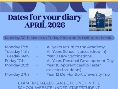 On Friday 27th March 2026, we will be operating different arrangements for years 10, 11 and 13: • Years 11 and 13 will be in school as we are running a Road to Success Day • Year 10 will be engaged in a day of work experience placements • Students in other year groups should not attend on this dayRoad to Success Day is to support Year 11 and Year 13 in their final preparations for the summer examination season, which requires additional staffing to make the day run as smoothly as possible.The Road to Success events are similar to the ones run in previous years. The day is entirely focused on Year 11 and 13. The day is split into sessions for each subject, often in smaller groups, and is designed to provide focused feedback to students in preparation for their final push towards the exam season. Combined with lunchtime and after-school interventions these are the final touches that in previous years