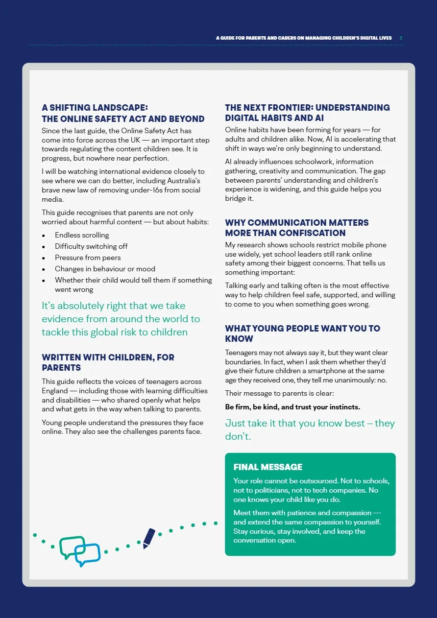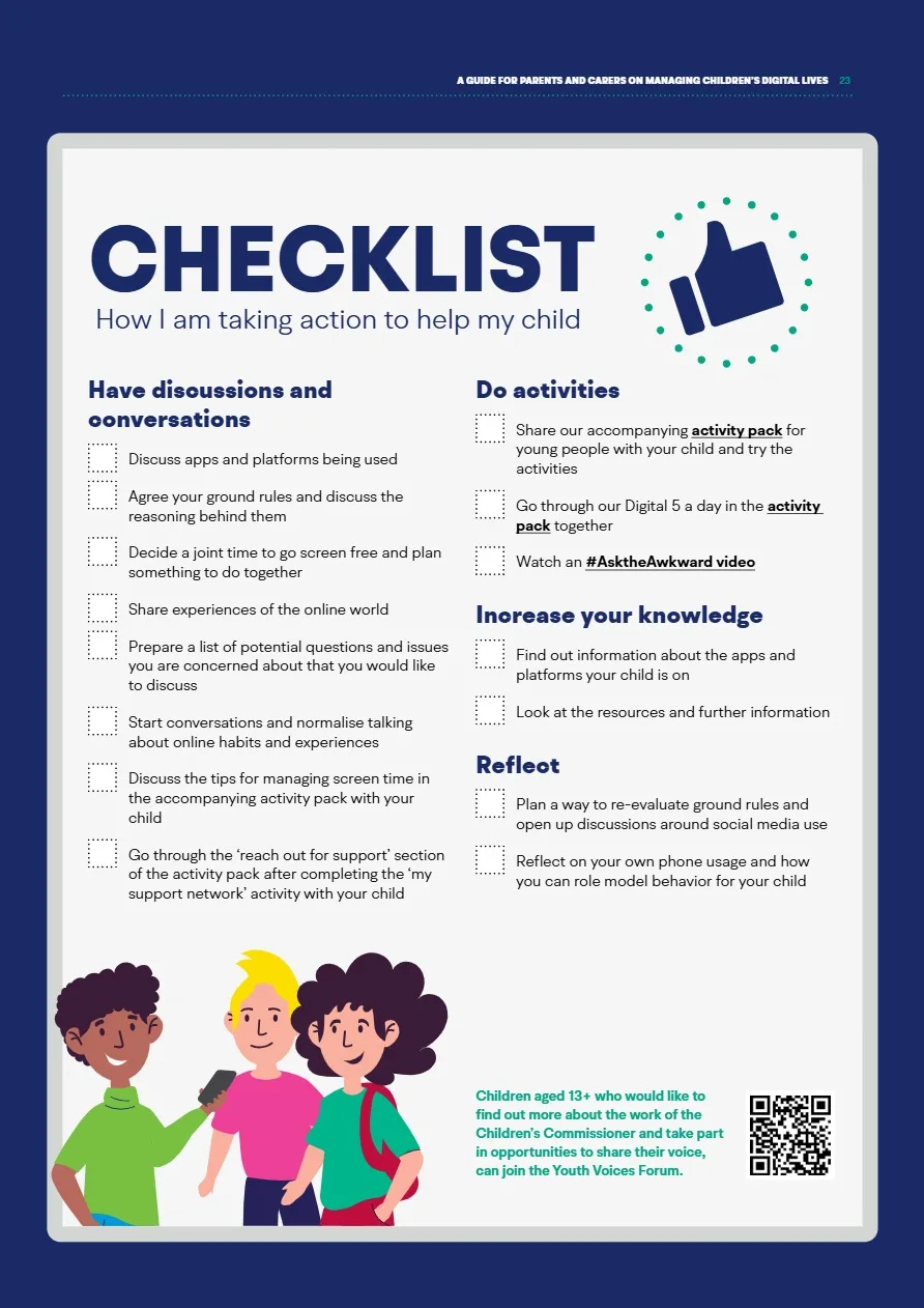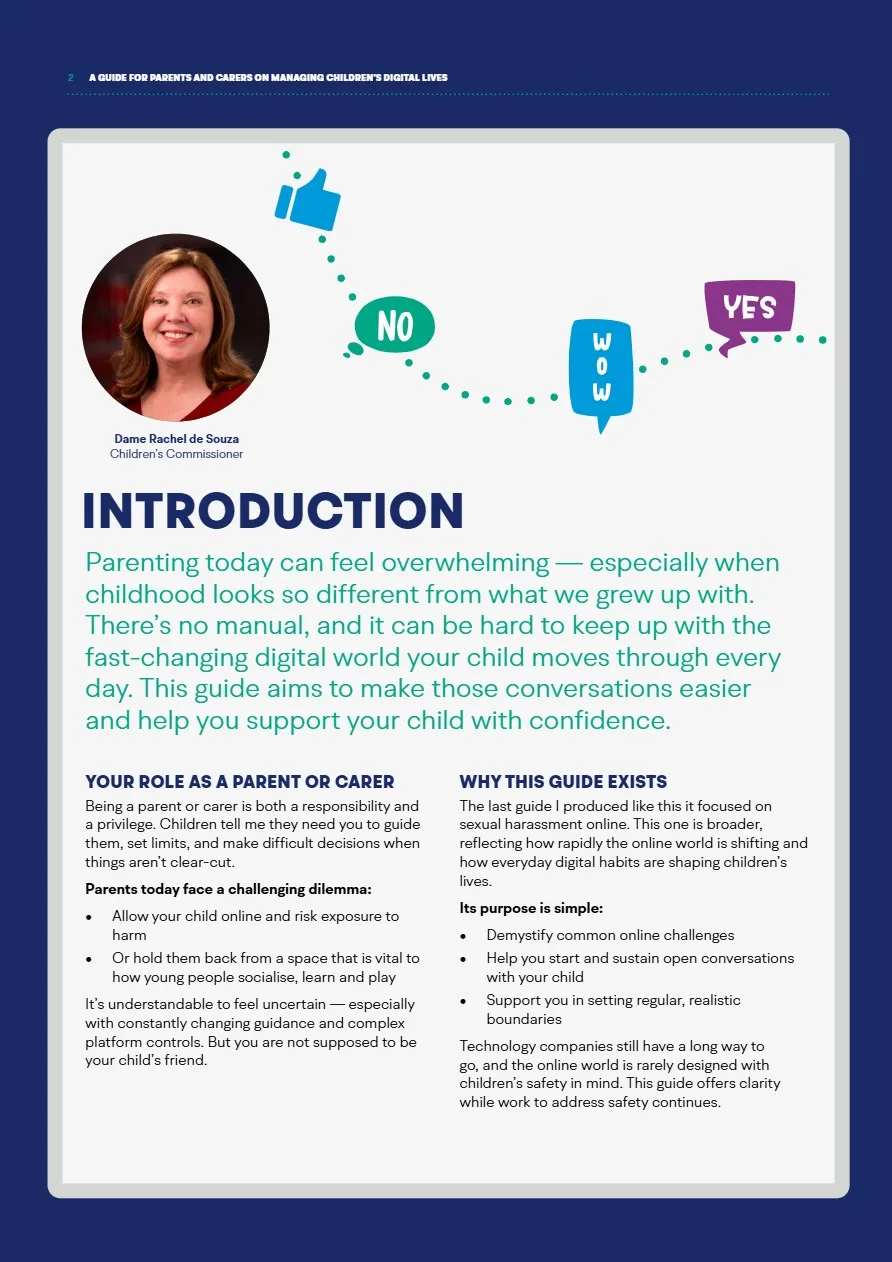 The Children’s Commissioner has published a very useful resource for parents/carers, ‘What I wish my parents or carers knew…’: A guide for parents and carers on managing children’s digital lives’
