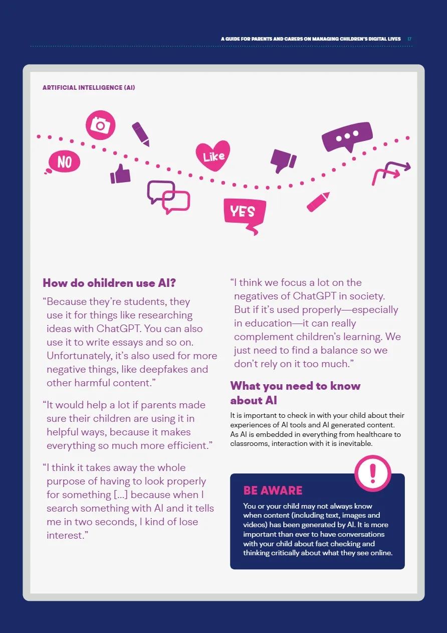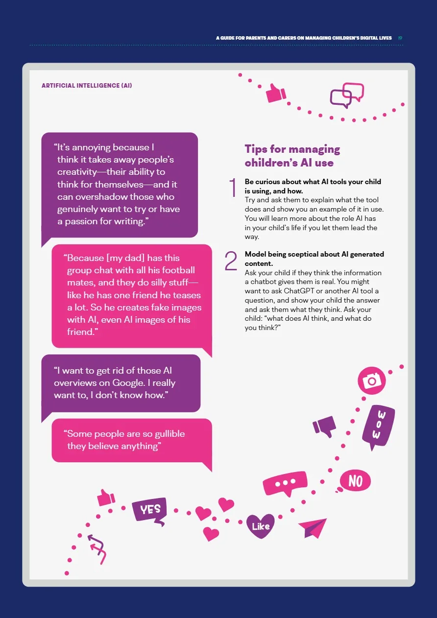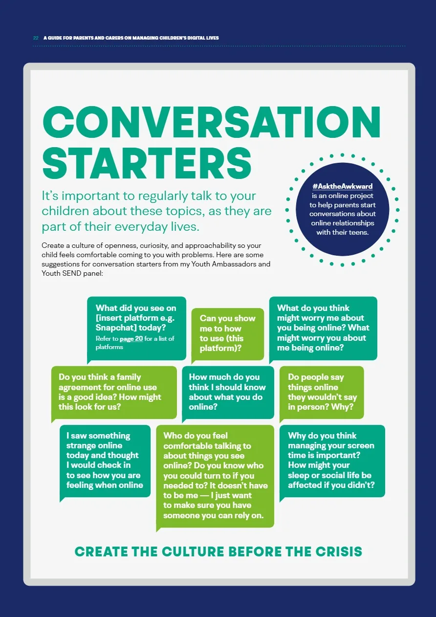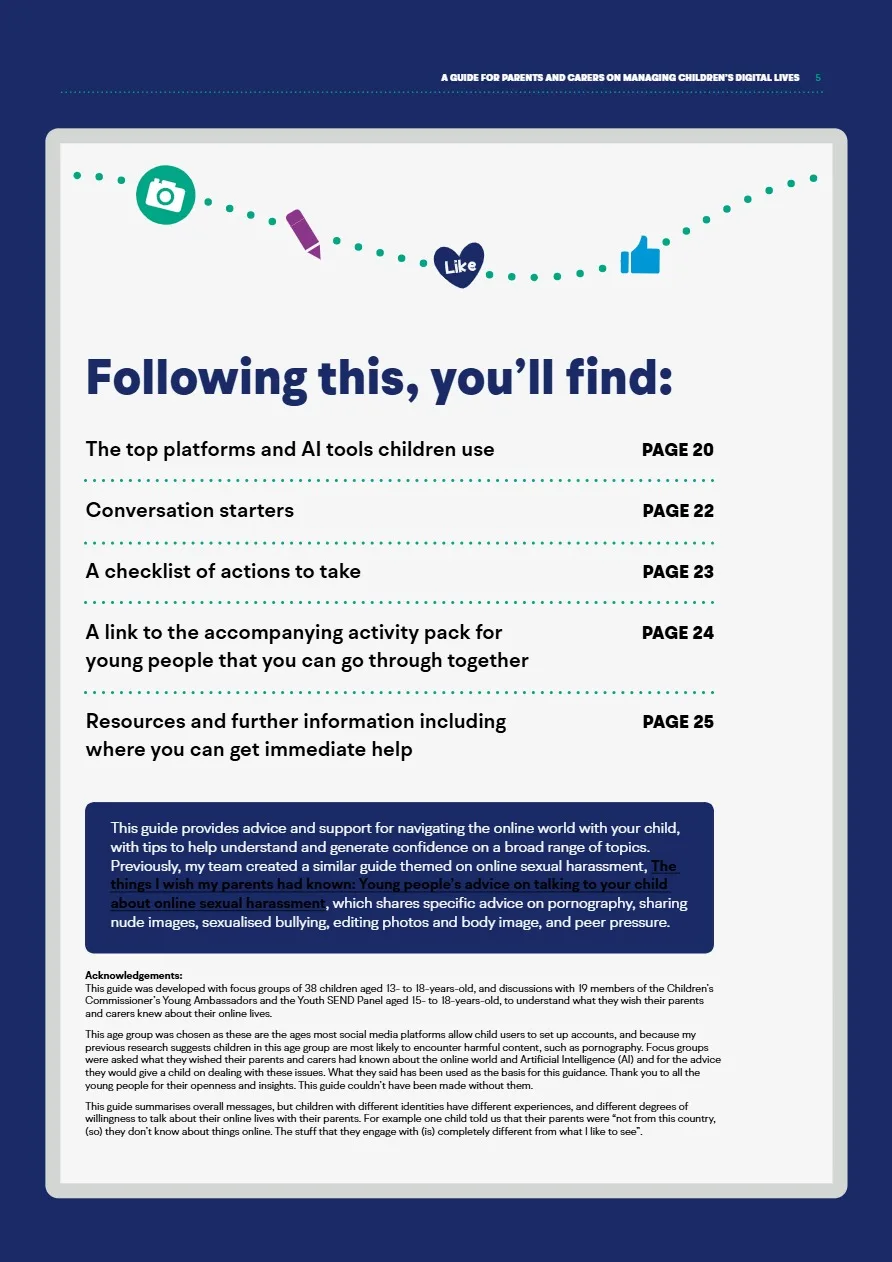 The Children’s Commissioner has published a very useful resource for parents/carers, ‘What I wish my parents or carers knew…’: A guide for parents and carers on managing children’s digital lives’