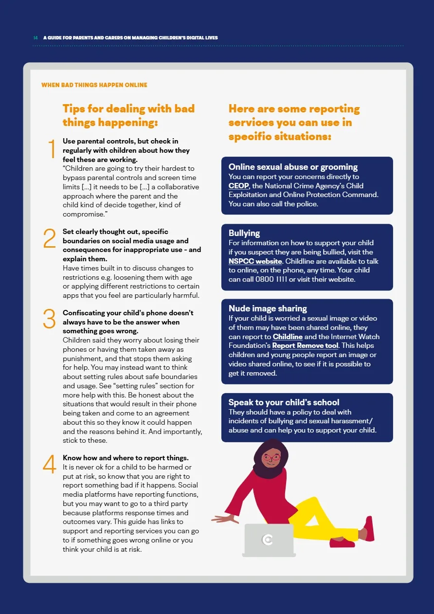 If you’re worried, want to report something, would like guidance on how to help your child stay safe online or would like to know more about the risks and benefits of online activity, these resources are for you.