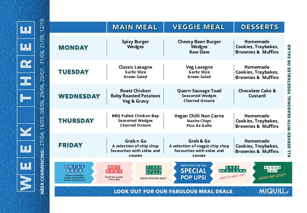 We run a three-week menu cycle.