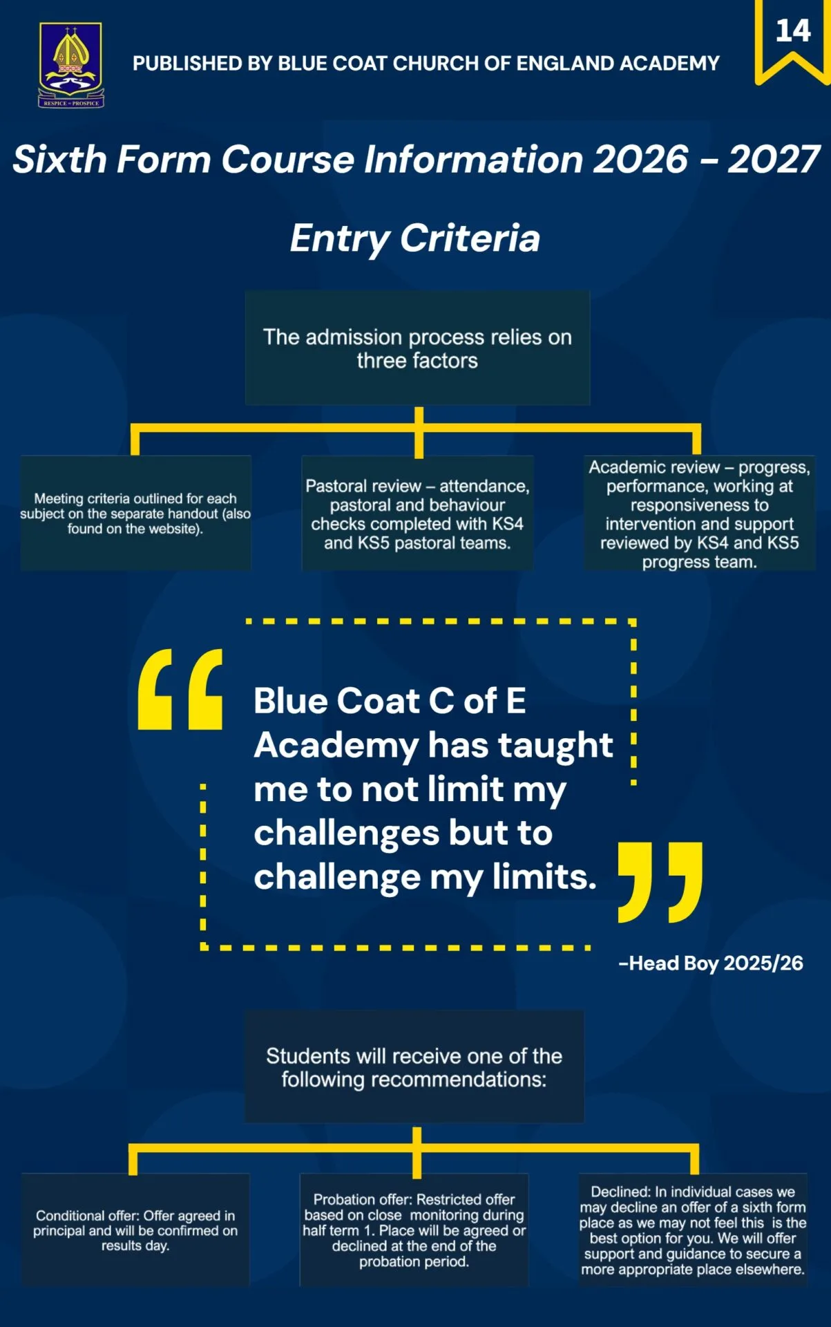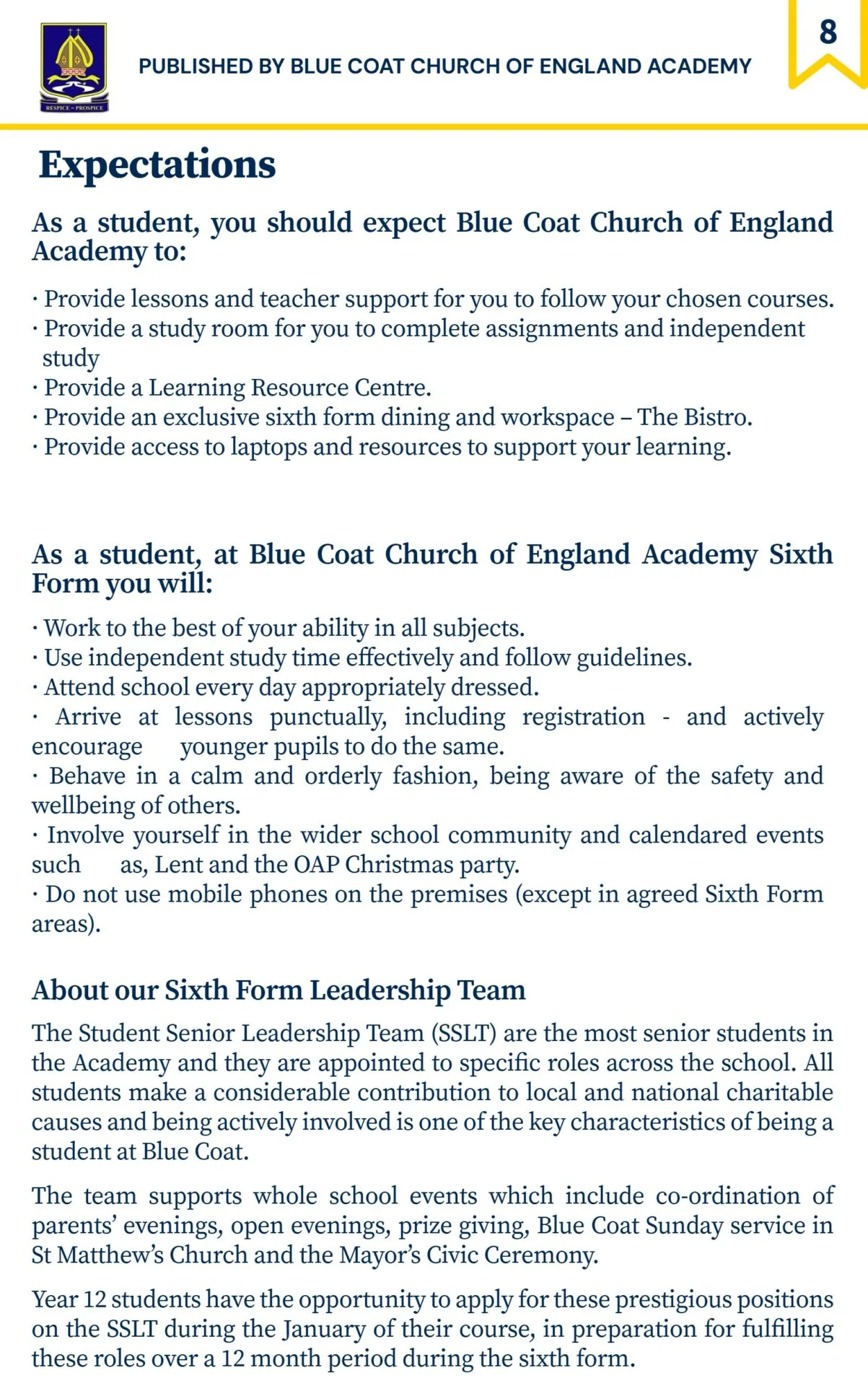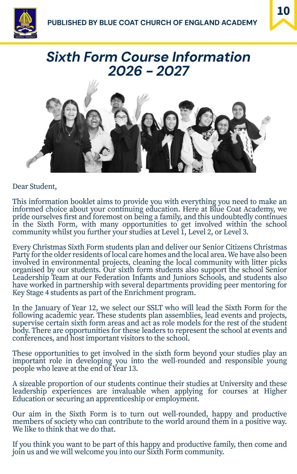 External applications > Blue Coat Church of England Academy: Sixth form External Application – September 2026 – Fill in form