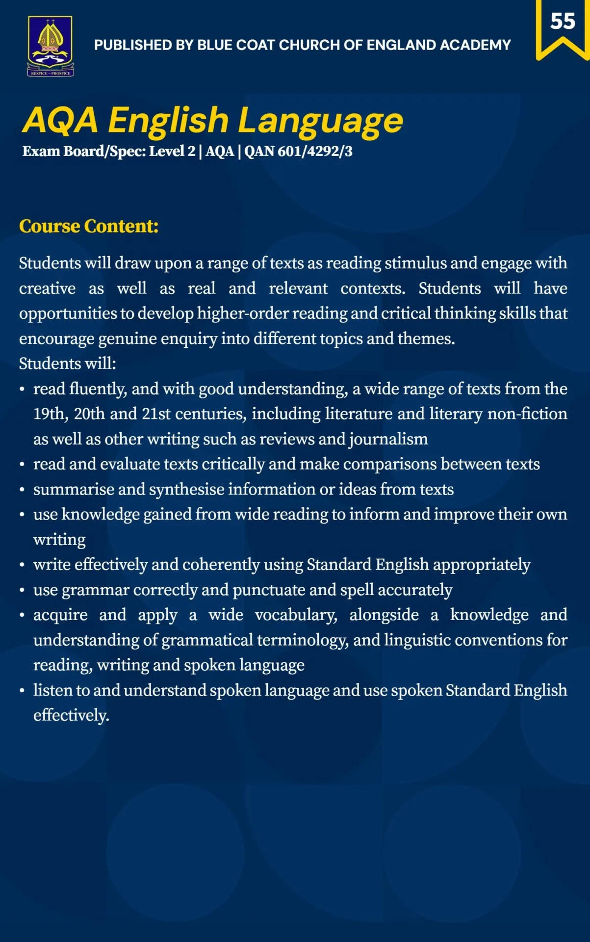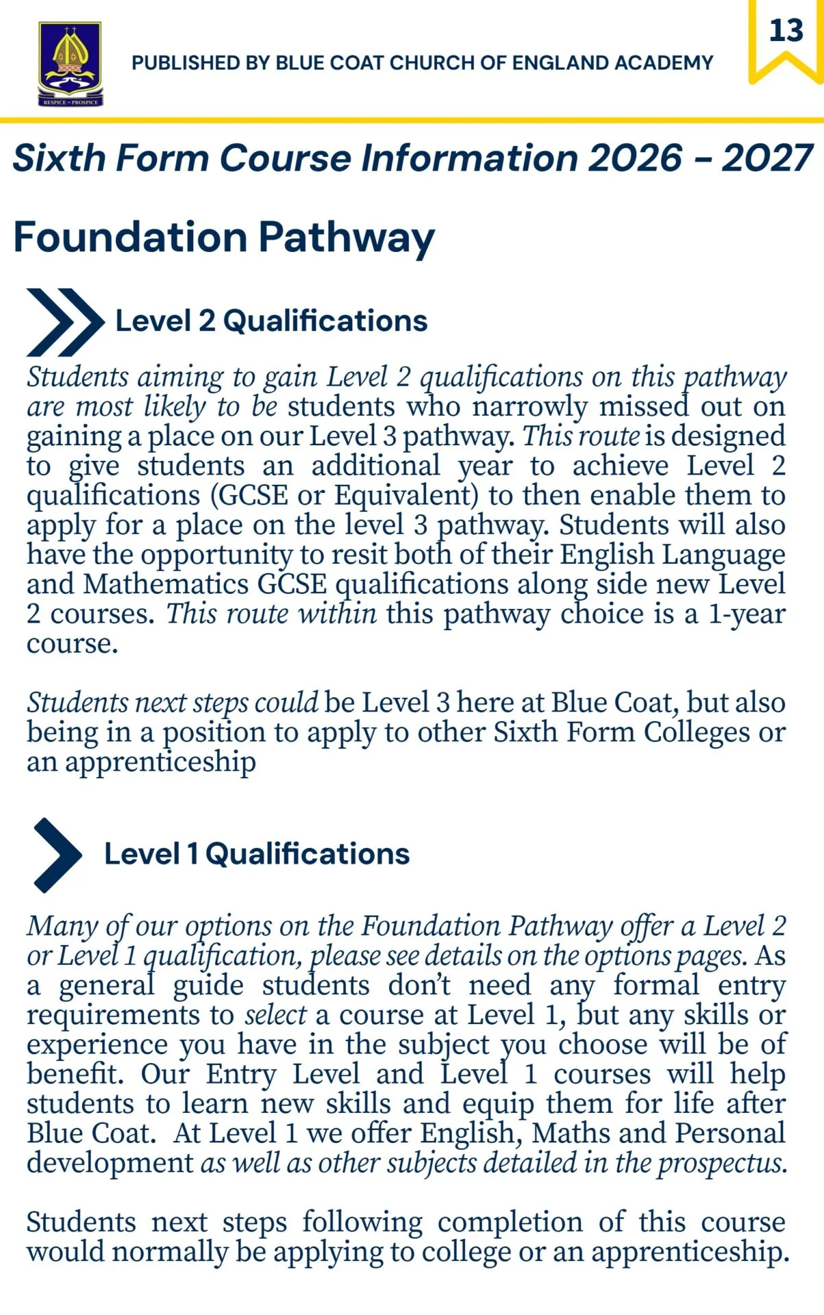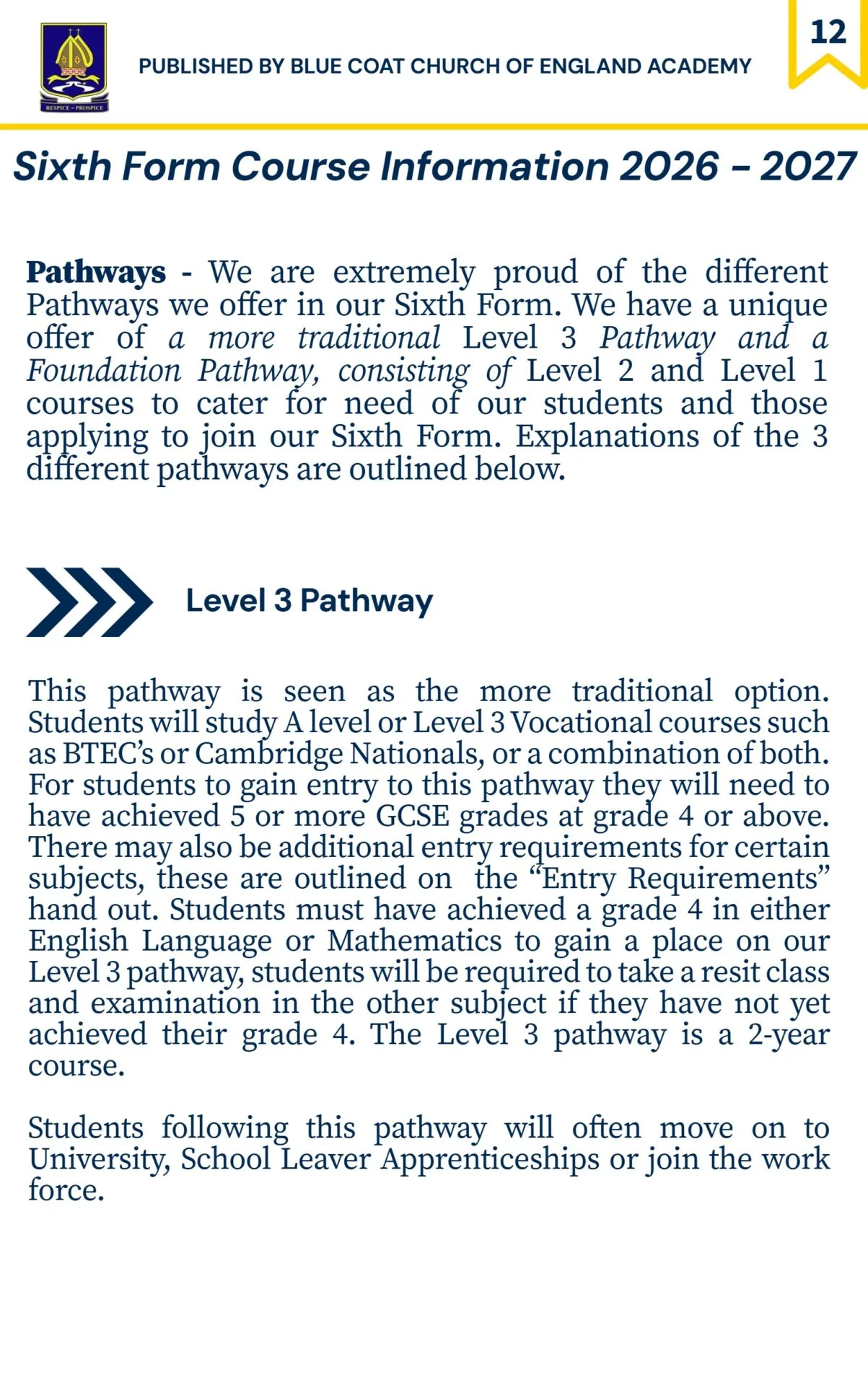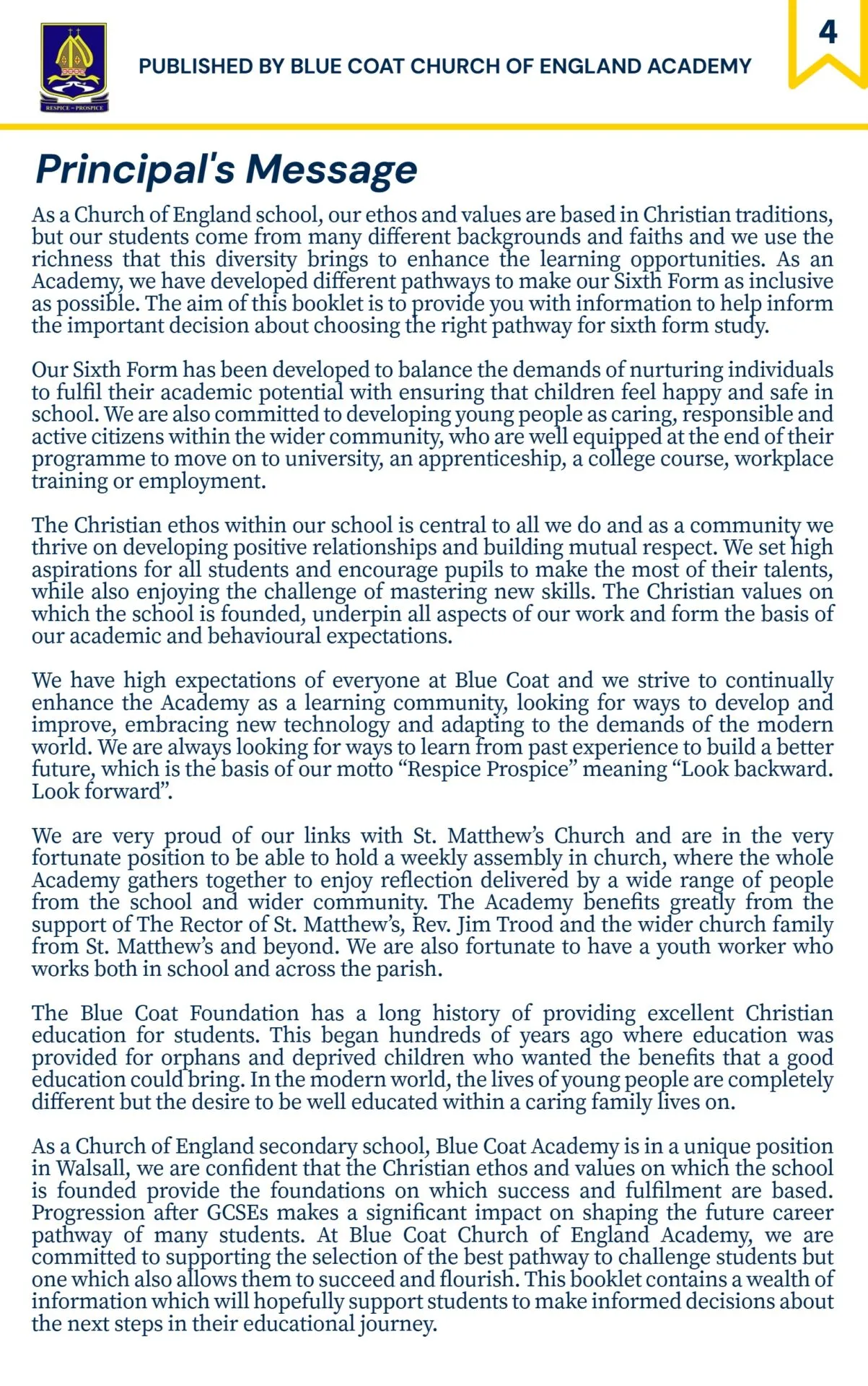 External applications > Blue Coat Church of England Academy: Sixth form External Application – September 2026 – Fill in form
