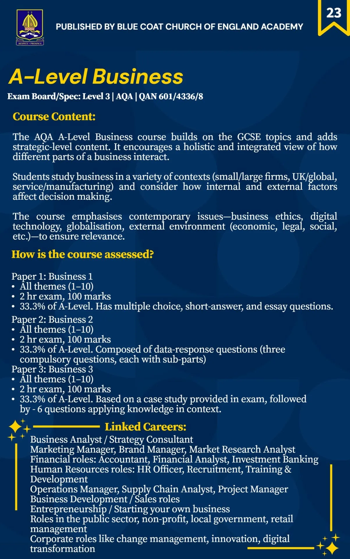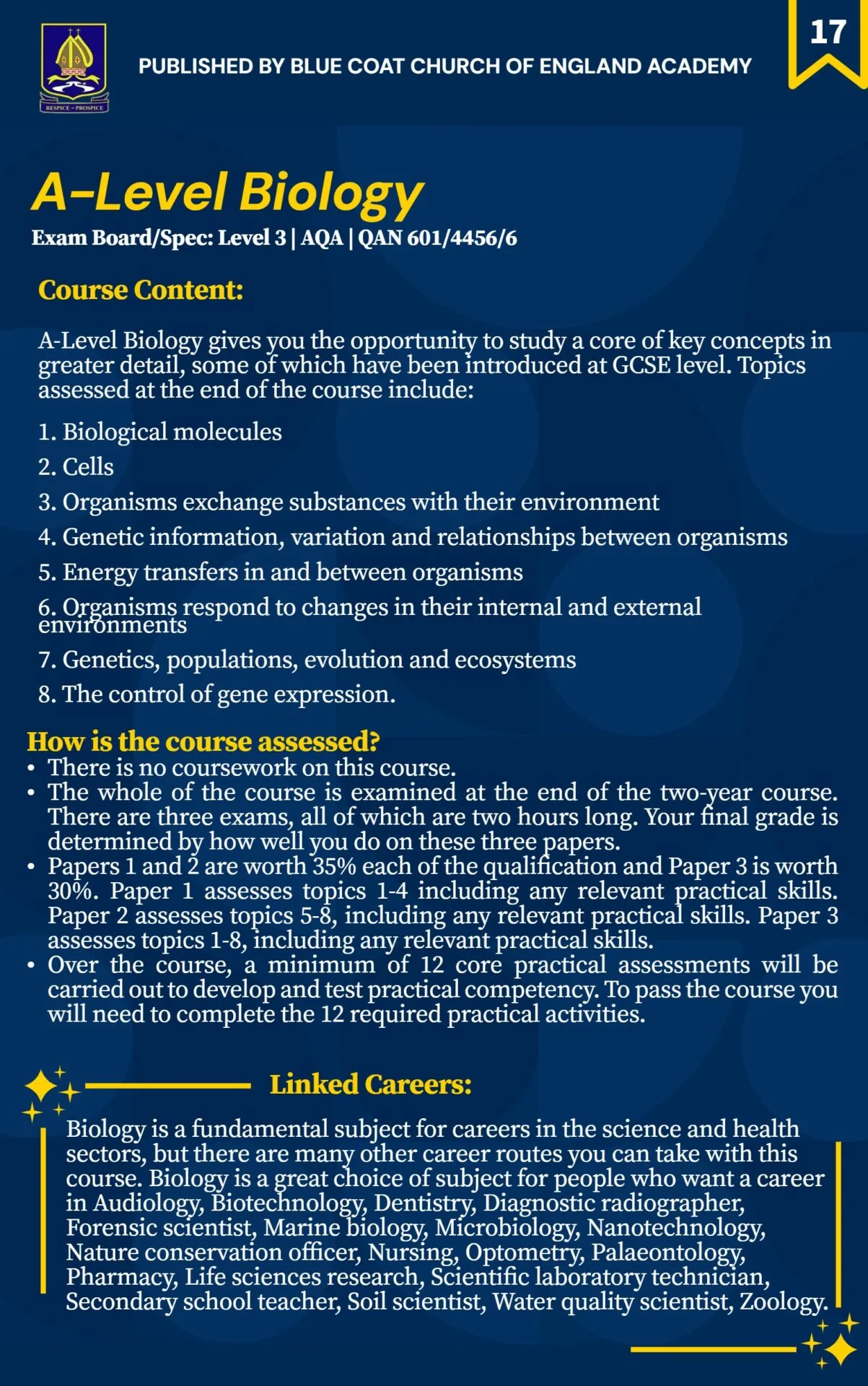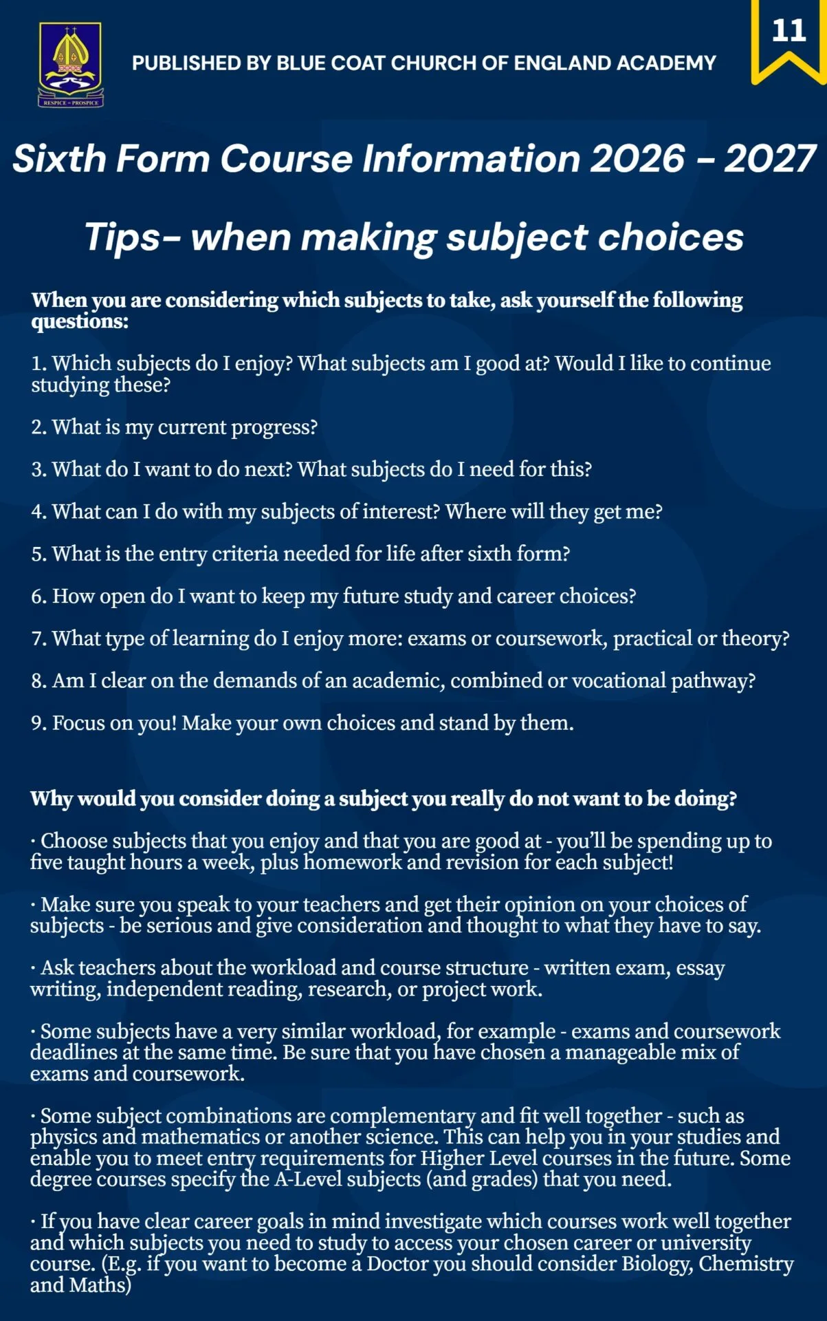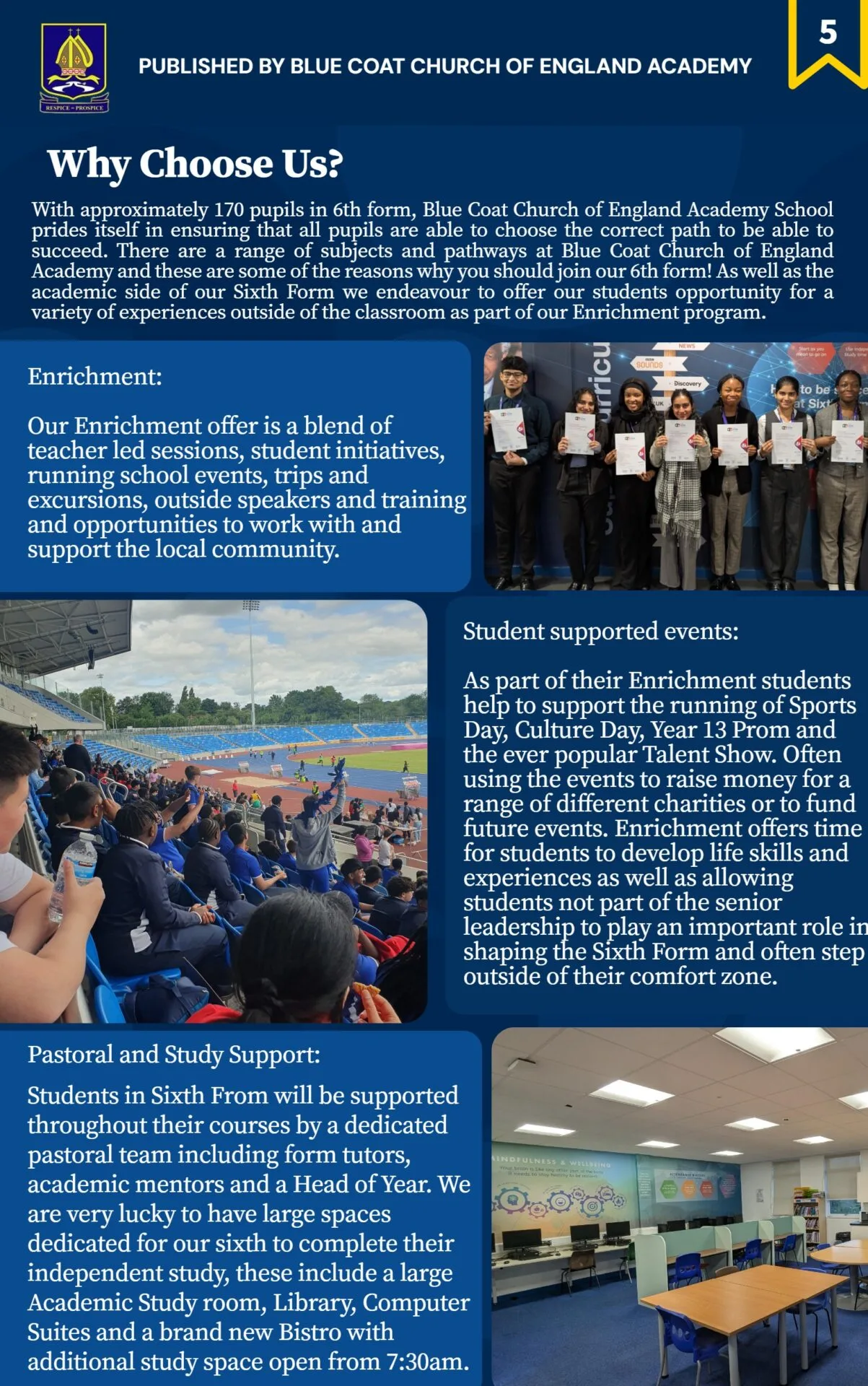 Our Open Evening for Sixth this year will be Thursday 11th December between 5pm and 7pm. Students and their parents are encouraged to attend this event to talk to subject teachers, find out more about sixth form life at Blue Coat and the application process.