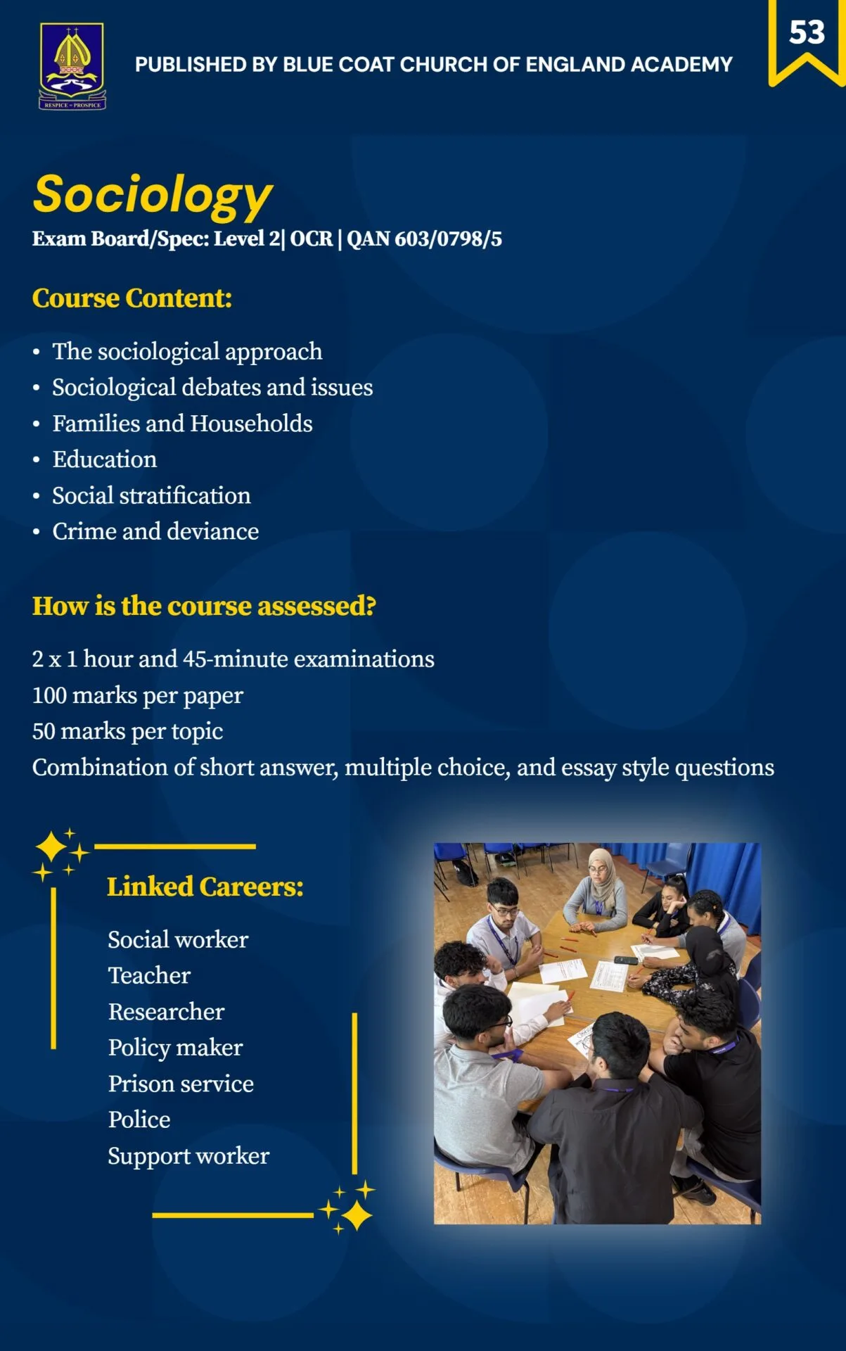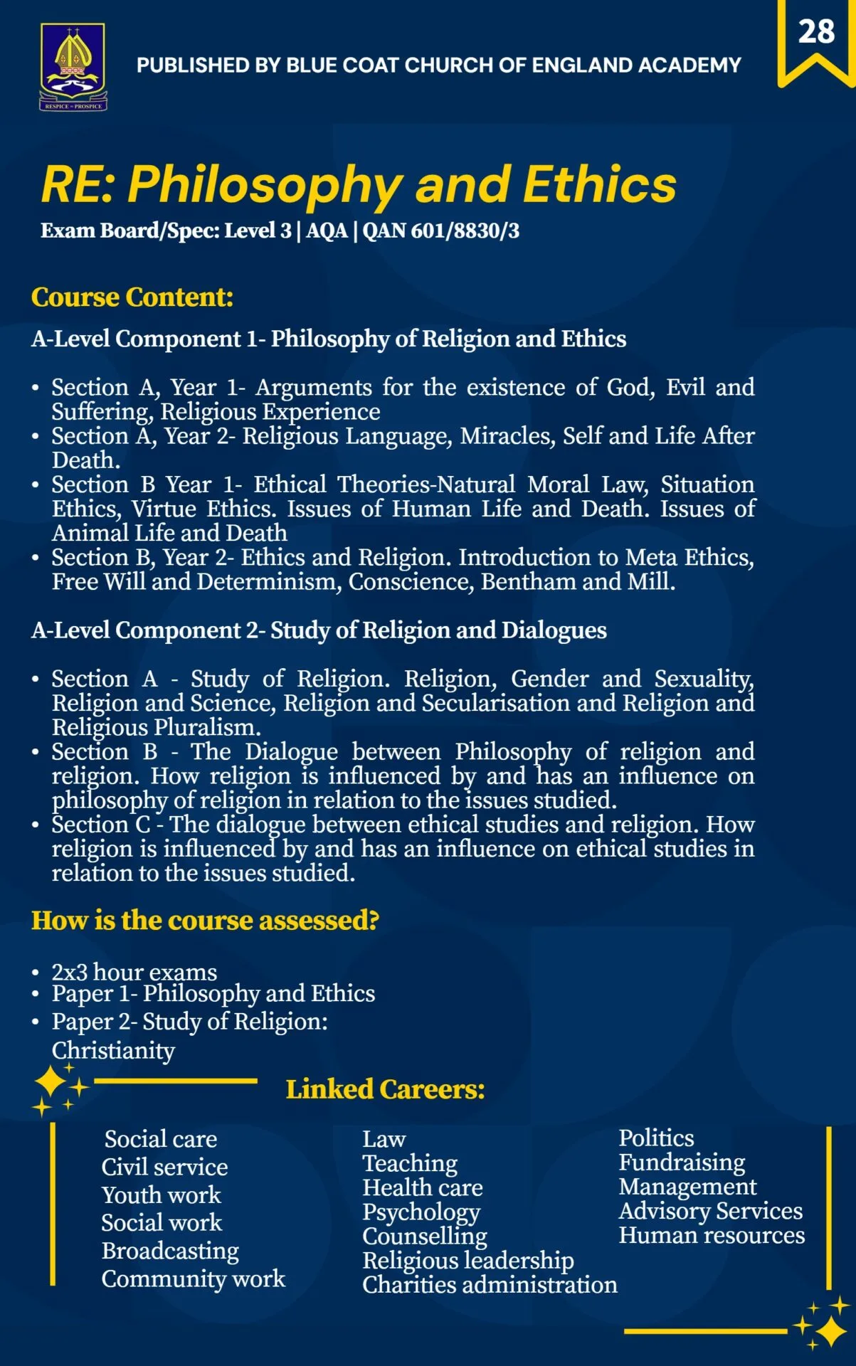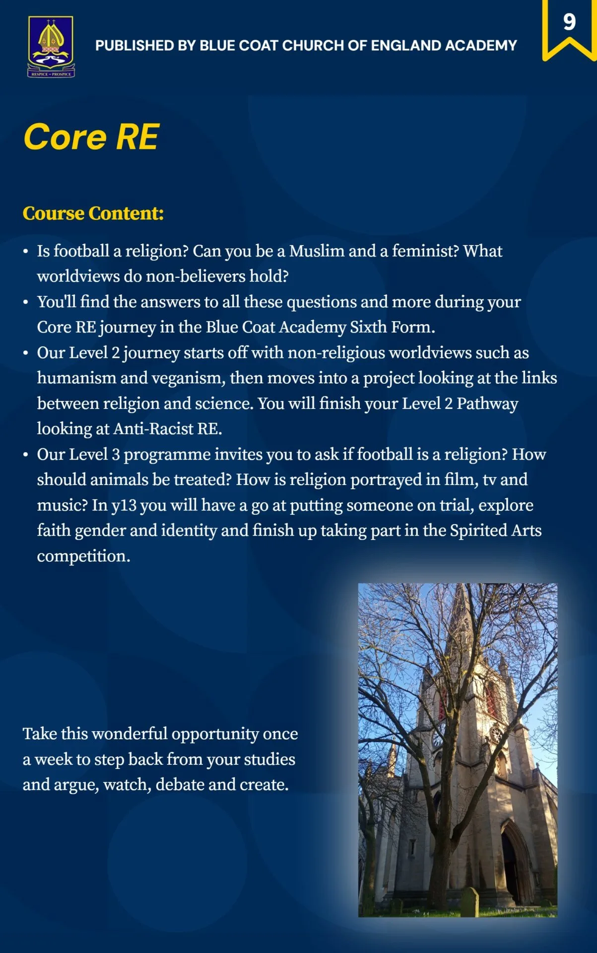 “Sixth form students appreciate the relevance and challenge of their weekly core RE lessons. Providing a safe space in which to learn about religion and its impact upon believers. Students in all years are effusive about their enjoyment of their lessons. They appreciate the breadth of religions that they study and the respect that is shown for all belief systems and worldviews.” SIAMs 2023